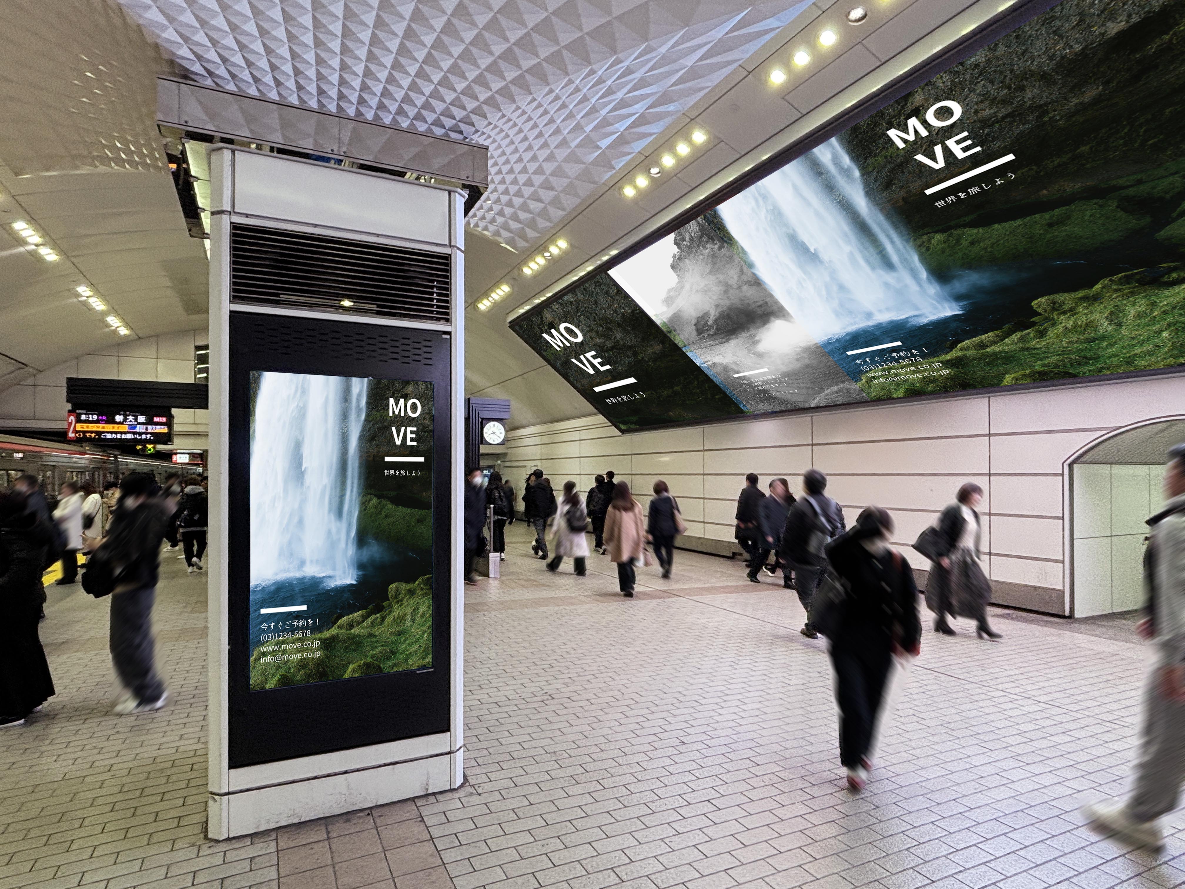 | 大阪駅(中央口コンコース) | JR J・ADビジョンWEST 大阪駅中央口デジタルサイネージ | 70インチ | 1駅1エリア12面 | ¥240,000 | 1週間(月曜日スタート) |